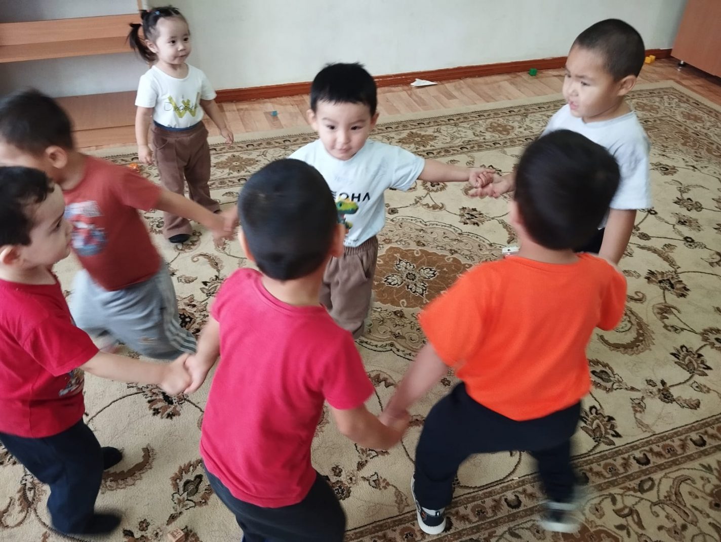 "Балбөбек" шағын орталықтың бүлдіршіндерге достық қарым-қатынастарын орнату үшін, ұйымшылдыққа, достыққа үйрететін ойындар ойнатады.