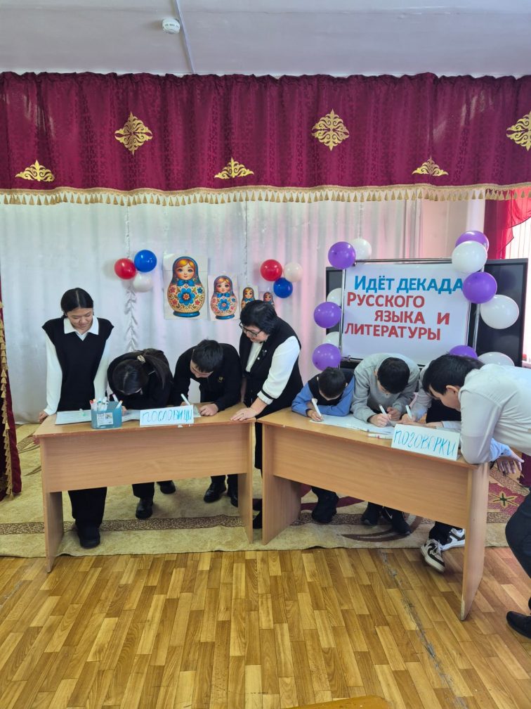 "Орыс тілі мен әдебиеті" онкүндігі аясында орта буын оқушыларымен "Жаңылтпаштар айту, жұмбақтар шешу" ойын-сабағы өткізілді. Оқушылар дайындаған кітапшаларымен ауысып, жұмбақтарды шешті..