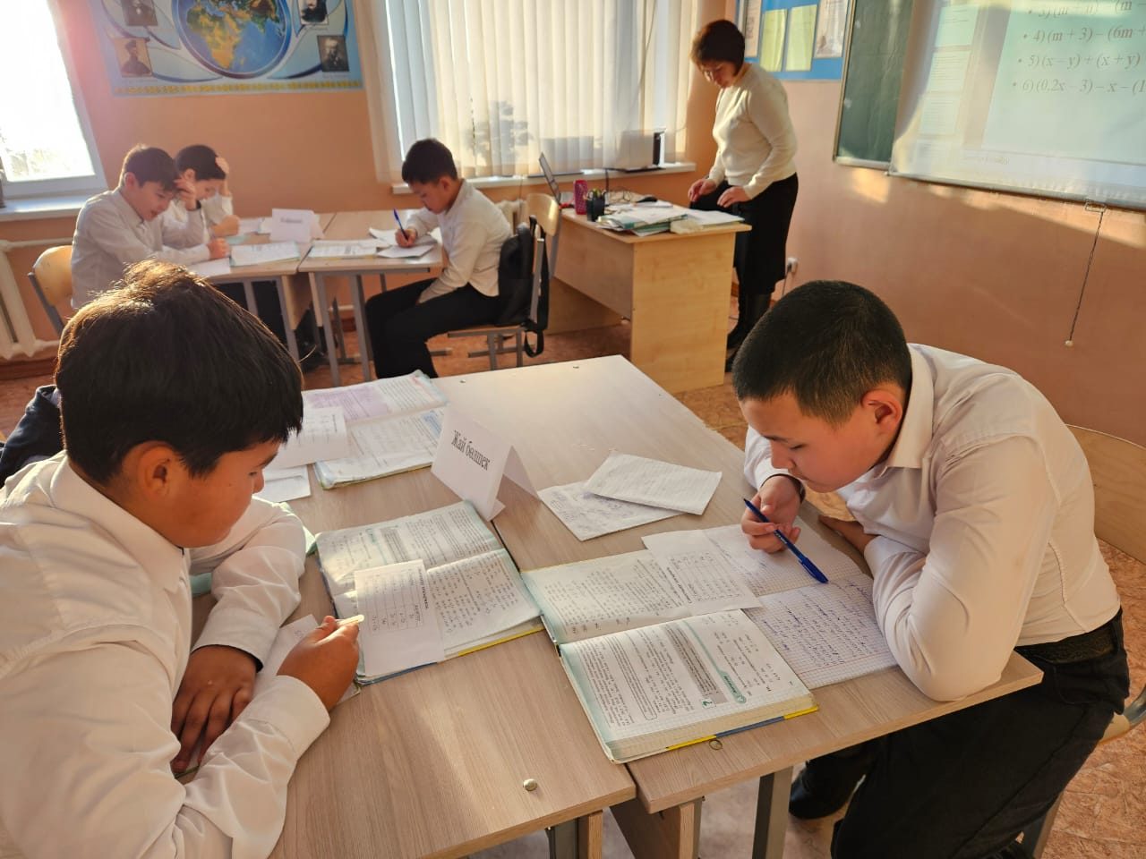 5-6 сыныптарда математика пәнінен ашық сабақ өткізілді. Тақырыптар: 5-сынып: Жай бөлшектерді және аралас сандарды бөлу. 6-сынып: Жақшаларды ашу. Коэффициент. Ұқсас қосылғыштар. Мақсаты: Өткен тақырыптарды қайталау арқылы білімдерін бекіту. Оқушылар сабақта әр-түрлі әдістер арқылы есептерді шығарды, шығармашылық тапсырмалар орындады. Интерактивті әдістерді қолданып, қызықты есептер шығарылды, білімдері бекітілді.