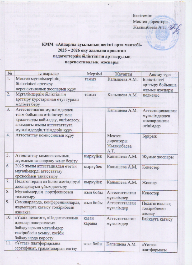 Педагогтердің біліктілігін арттырудың перспективалық жоспары