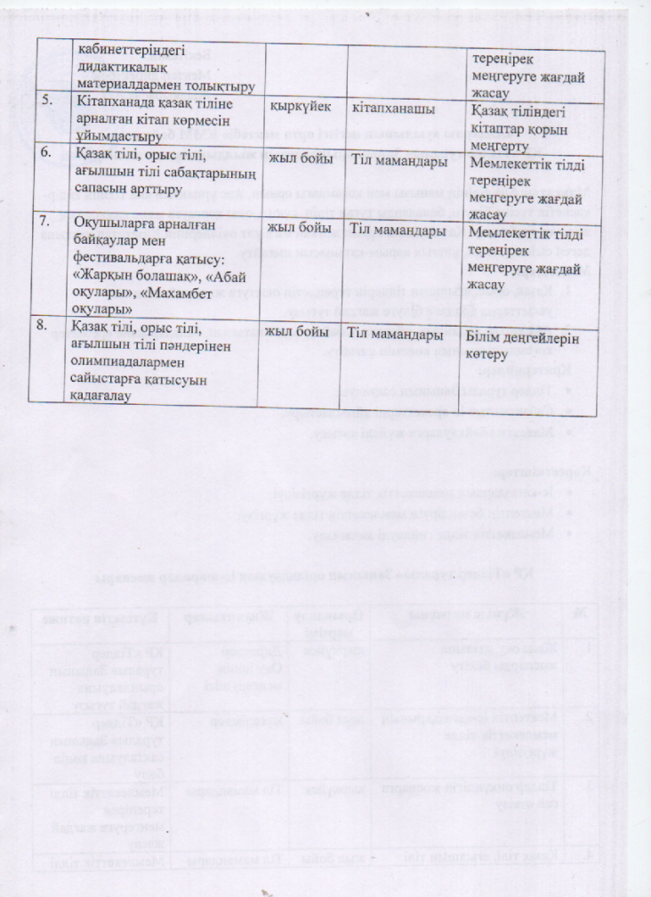 "Тілдер туралы" Заңын орындалудың жұмыс жоспары