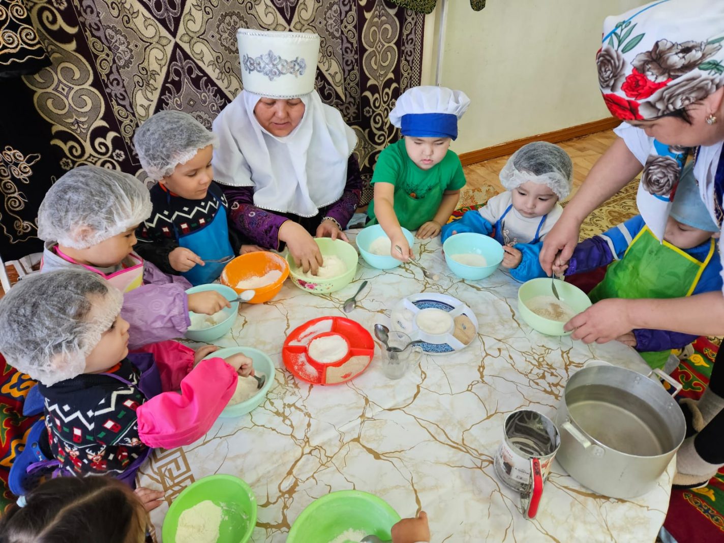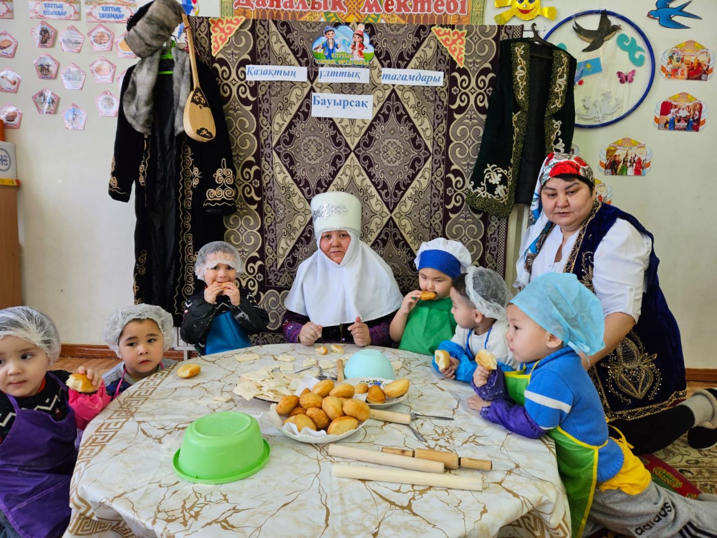 "Балбөбек" шағын орталықта балалармен ашық сабақ өткізілді. Сабақтың тақырыбы: Қазақтың ұлттық тағамдары. Бауырсақ. Балалар бауырсаққа керек тағамдардың атауын айтып отырып, қамыр іледі. Сабаққа барлық балалар белсенді қатысып, қызығушылық танытты.