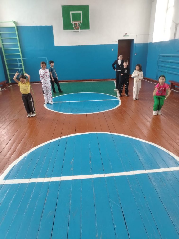 1 сынып оқушылары дене шынықтыру сабағында жарыс ойындарға қатысты. Мақсаты: шапшандыққа, төзімділікке үйрену. Екі топқа бөлініп оқушылар жарысып, әртүрлі спорттық жаттығулар жасады.