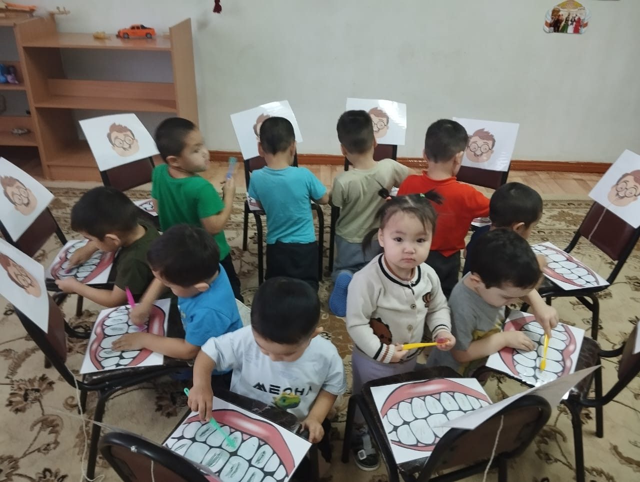 Кішкентай бүлдіршіндермен "Ауыз гигиенасы" тақырыбында ойын-сабақ өткізілді. Балалар тамақтан кейін ауызын тазалау гигиенасымен танысты.