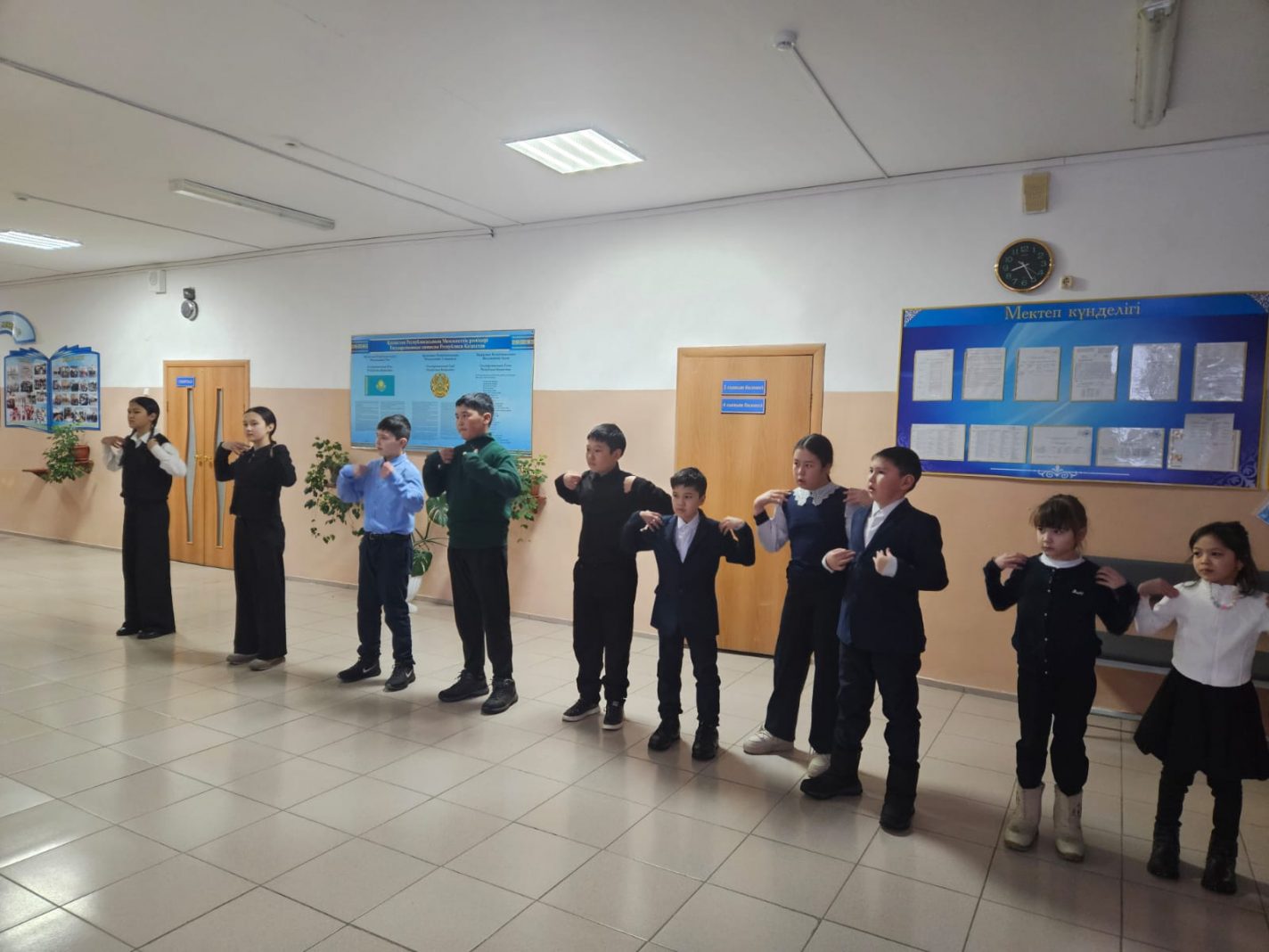 Айдарлы ауылының негізгі орта мектебінің оқушылары мектеп Парламентпен бірлесіп, таңертен сабақтардың алдында таңғы жаттығуларын жасап, денелерін энергиямен толтырады.