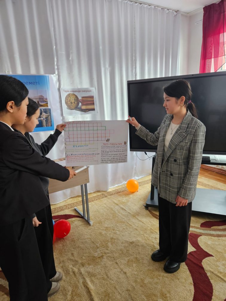 Тарих онкүндігі аясында "Тарих әлеміне саяхат" тақырыбында оқушылар газеттерін ұсынып, қорғады.