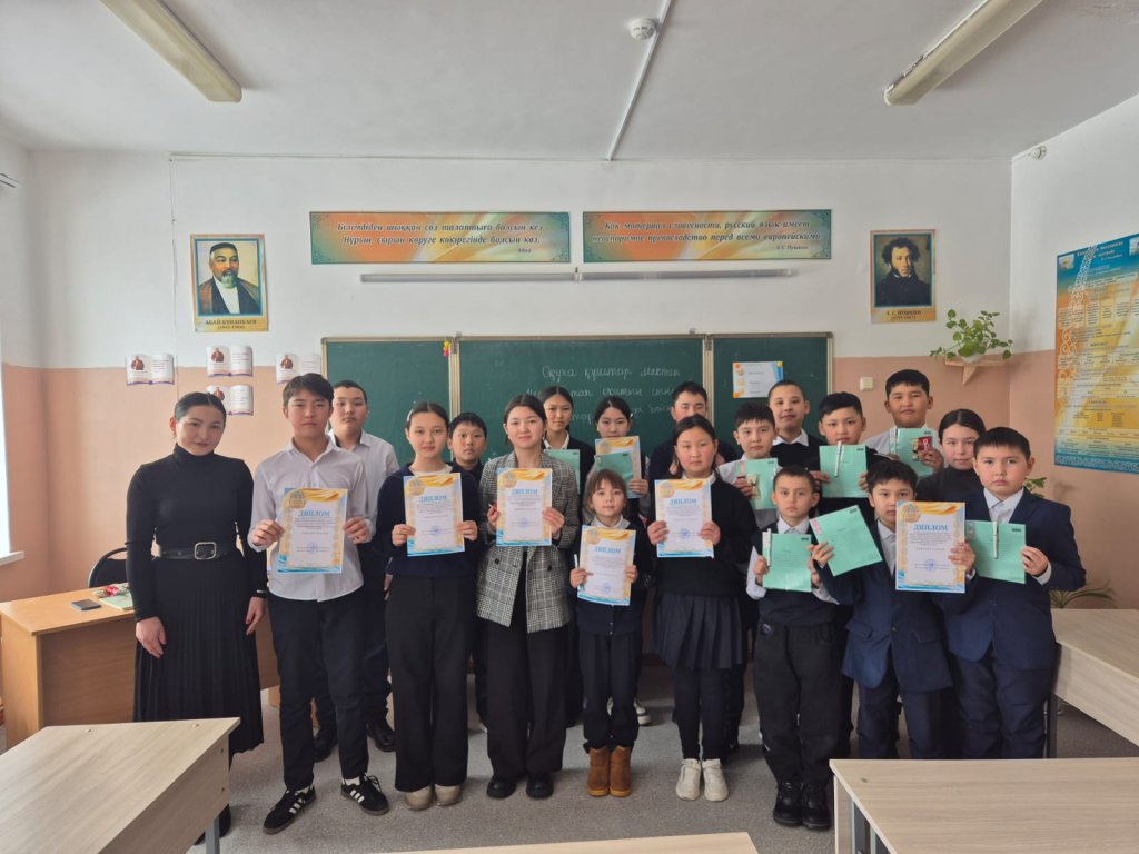 "Оқуға құштар мектеп" жобасы аясында 2 - 9 сыныптар арасында "Үздік кітап оқытин сынып" байқауы өткізілді. Оқушылар алдын ала берген кітаптарын оқып, мазмұндап, сұрақтарға жауап берді. Барлық оқушылар белсенді қатысып, номинициялармен марапатталды.