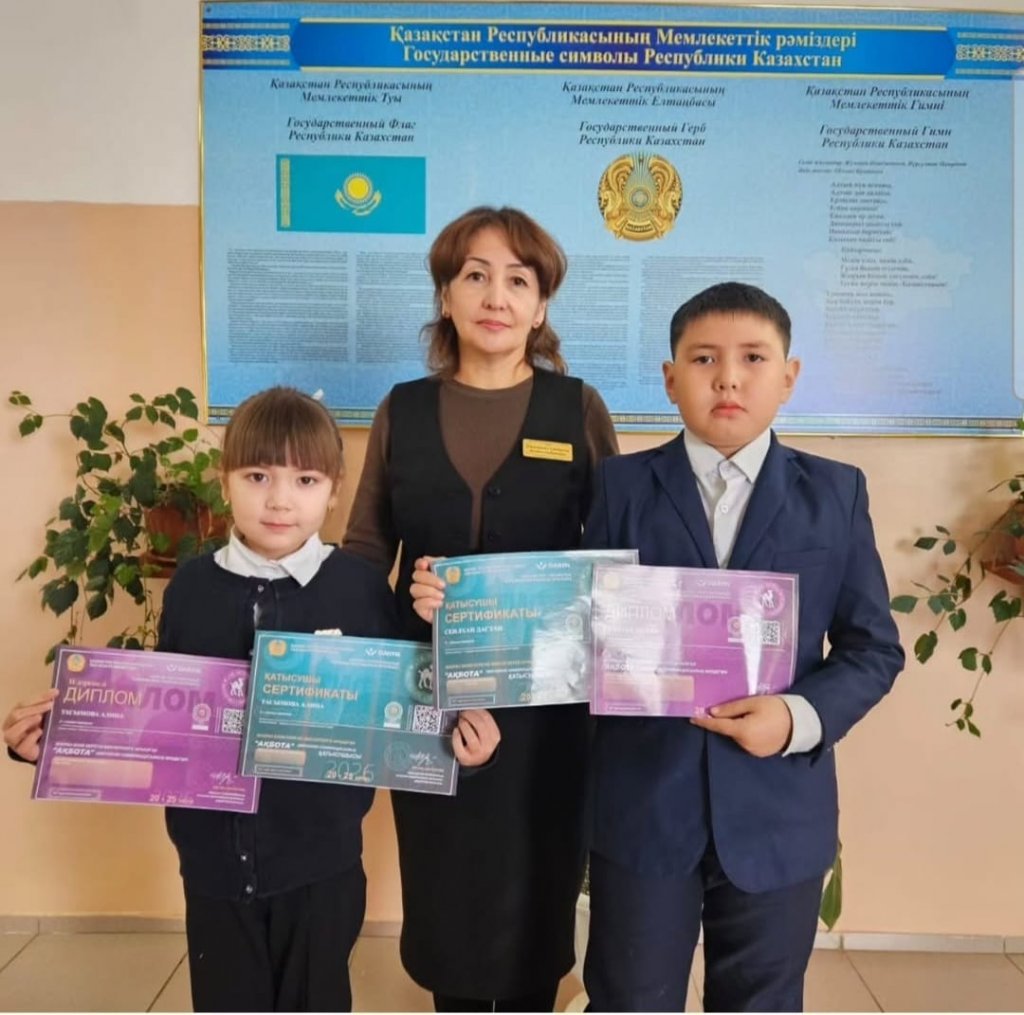 2 -3 сынып оқушылары Тасымова Алина және Сеилхан Дастан республикалық "Ақбота" зияткерлік олимпиадасына қатысып, жүлделі ІІ дәрежелі Дипломмен марапатталды.